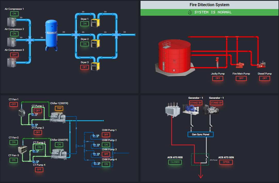 An IoT-based web portal for monitoring and controlling generators, pumps, dryers, and chillers with real-time data and live updates.